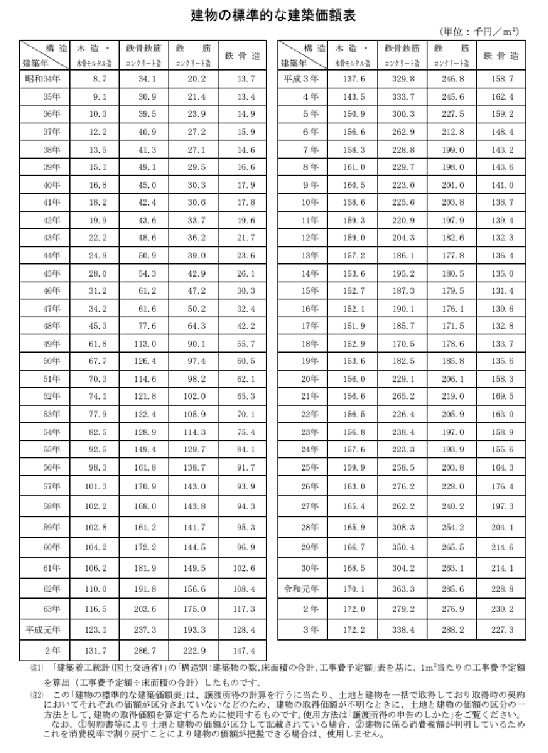 - 1-1-4. 建物の取得価額は「建築価額表」で計算することもできる